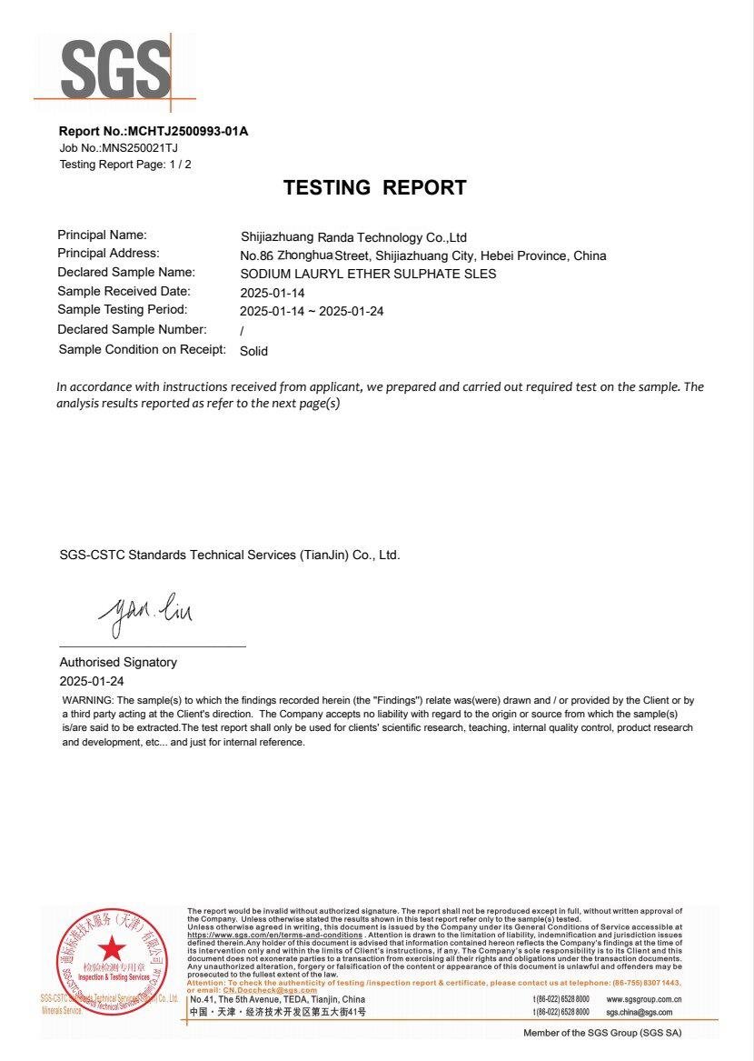 Shijiazhuang Randa Technology Co. , Ltd. is locatedin Hebei,Located in Hebei Province. It is close to Beijing, the capital of China, and the port city of Tianjin. We specialize in the production of eSurfactants and emulsifiers, the main products are SLES 70%,LABSA 96%,CAB-35,CDEA 95%,AEO(2、3、7、9) and other products, the annual total output of 500,000 tons. Our products are exported to more than 40 countries and regions around the world, and the annual export volume reaches hundreds of millions of US dollars. Our philosophy, mutual benefit, common development. Look forward to working with you!